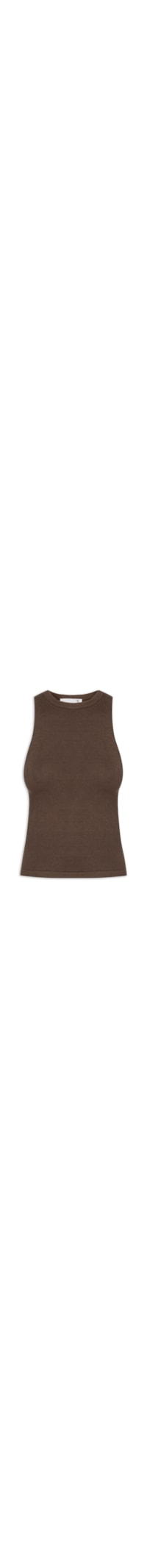 A blusa marrom é confeccionada em tricot com alta elasticidade. A peça justa ao corpo possui decote redondo, alças médias, sem bojo e cavas regulares.