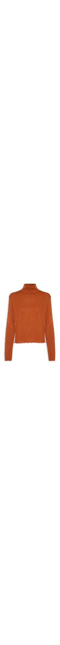 A blusa marrom é confeccionada em tricot com média elasticidade. A peça solta ao corpo possui gola cacharrel, mangas longas e acabamento canelado.
