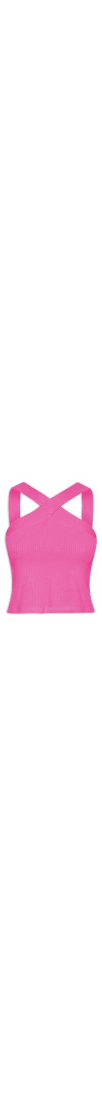 A blusa rosa neon é confeccionada em malha canelada com alta elasticidade. A peça justa ao corpo possui decote frontal halter e posterior reto, sem bojo, alças médias cruzadas na parte frontal, cavas regulares e comprimento cropped*.