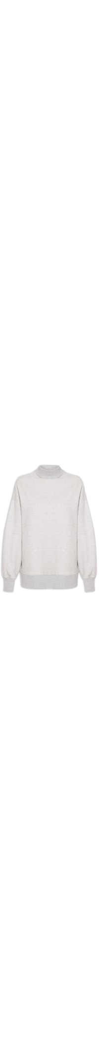 a blusa cinza mescla é confeccionada em moletom. a peça possui gola alta, mangas longas de punhos, shape solto, caimento reto e acabamento canelado.
