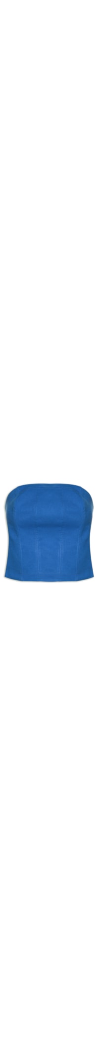A blusa azul é confeccionada por tecido leve com toque em linho sem elasticidade. A peça justa ao corpo de modelo tomara que caia possui decote reto, recortes frontais, recorte posterior em lastex e comprimento cropped*.