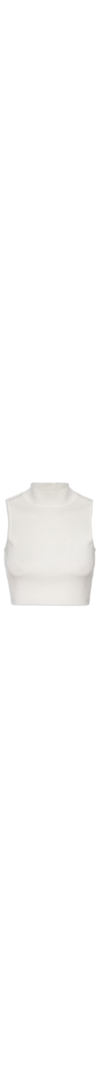 A blusa off white é confeciconada em malha com superficie canelada. A peça possui decote gola alta, cava estendida, comprimento cropped*, não possui bojo, não possui forro e shape justo.