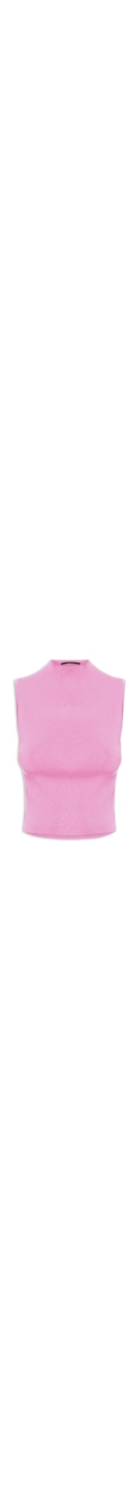 A blusa rosa é confeccionada em tricot canelado com alta elasticidade. A peça justa ao corpo possui gola alta, cavas regulares e comprimento cropped*.