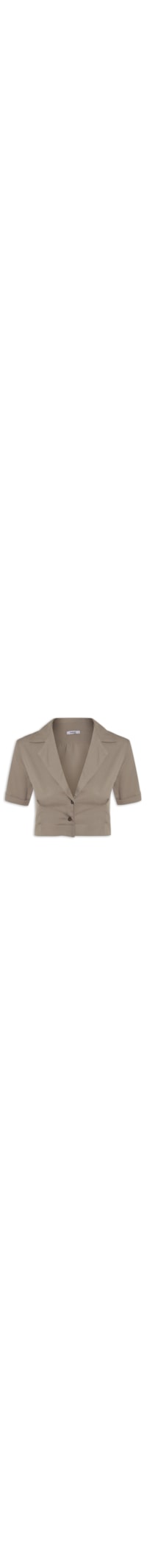 A blusa bege é confeccionada em tecido leve. A peça possui lapela, mangas curtas com barra italiana, pregas frontais, recorte posterior, comprimento cropped*, shape solto, caimento reto, acabamento pespontado e fechamento frontal por botões.