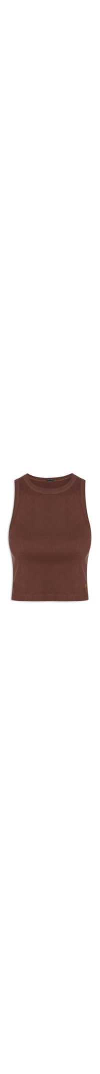 A blusa marrom é confeccionada em malha canelada com alta elasticidade. A peça justa ao corpo possui decote arredondado, cavas regulares, alças finas, acabamentos canelados, tag da marca bordada na parte frontal e comprimento cropped*.
