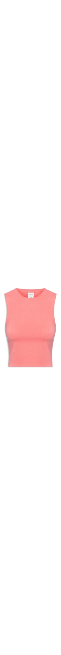 A blusa rosa é confeccionada em malha de algodão com média elasticidade. A peça justa ao corpo possui decote redondo, alças largas e comprimento cropped*.