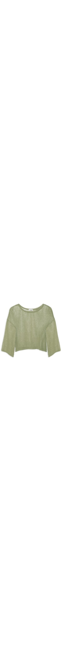 A blusa verde é confeccionada em tricot com alta elasticidade. A peça sola ao corpo possui decote redondo com acabamento canelado, ombros estendidos, mangas amplas, tricot em padrão rede vazado e comprimento cropped*