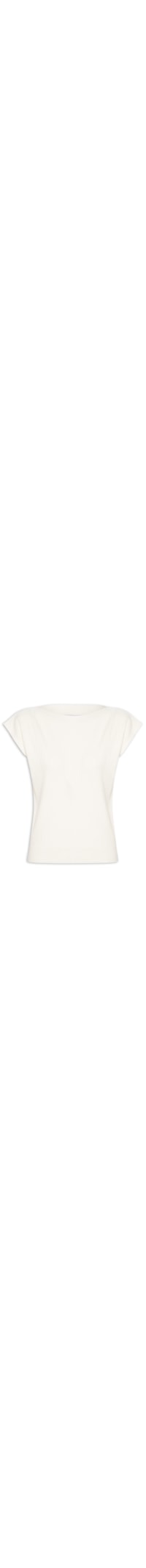 A blusa bege é confeccionada em tricot com superfície canelada de média elasticidade. A peça solta ao corpo, possui decote canoa e alças largas com ombros estendidos.