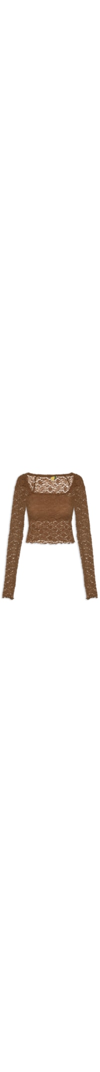 A blusa marrom é confeccionada em renda com baixa elasticidade. A peça justa ao corpo possui decote reto, mangas longas, forro na altura do busto, leve transparência e comprimento cropped*.
