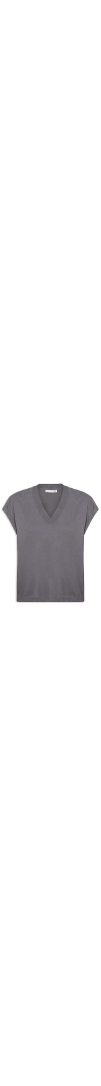 A blusa chumbo é confeccionada em malha de tricot com alta elasticidade. A peça solta ao corpo possui decote V, mangas curtas, acabamento canelado no decote e nas mangas e comprimento alongado.