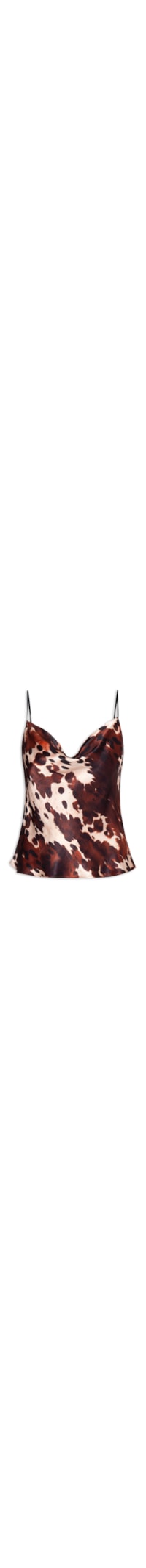 A blusa animal print é confeccionada em tecido leve com baixa elasticidade. A peça solta ao corpo possui decote degagê, alças finas reguláveis, padronagem animal print, comprimento cropped* e tag da marca em metal aplicada na parte posterior.