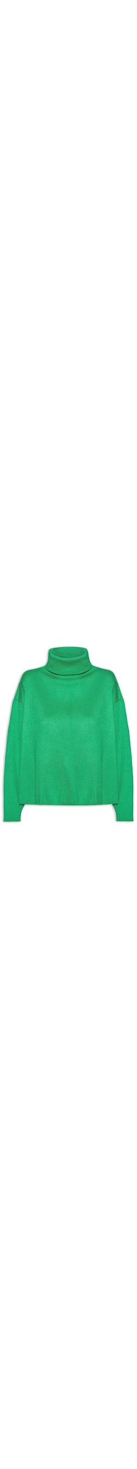 A blusa verde é confeccionada em tricot de média elasticidade. A peça justa ao corpo possui gola alta, ombros estendidos, mangas longas e barra com corte a fio.