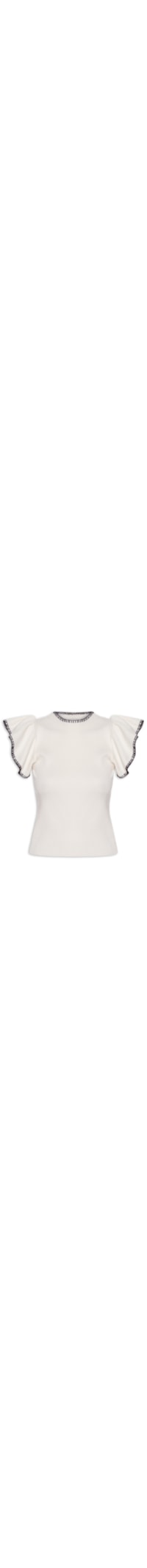 A blusa off white é confeccionada em tricot canelado com alta elasticidade. A peça justa ao corpo possui decote redondo, mangas curtas com efeito babado e acabamento pespontado na cor preta.