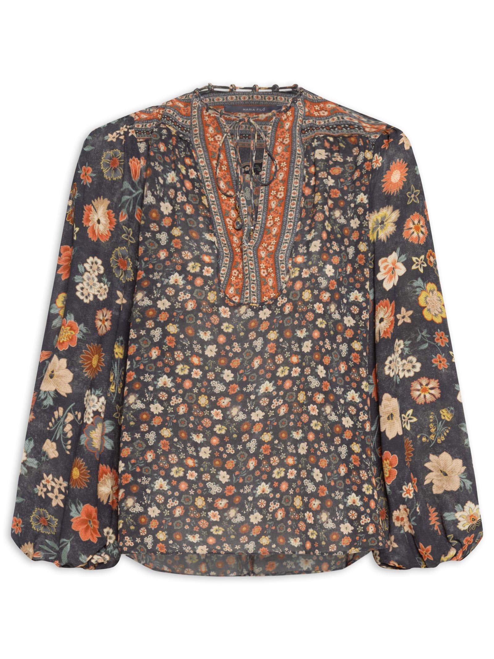 O estilo boho continuará uma forte tendência nesta estação. As roupas trazem tons mais fechados e estampas que resgatam a inspiração hippie de um modo mais sofisticado. Aposte nesta blusa Maria Filó ao lado de uma mini saia, sandália flat, brincos e máxi bolsa para finalizar.