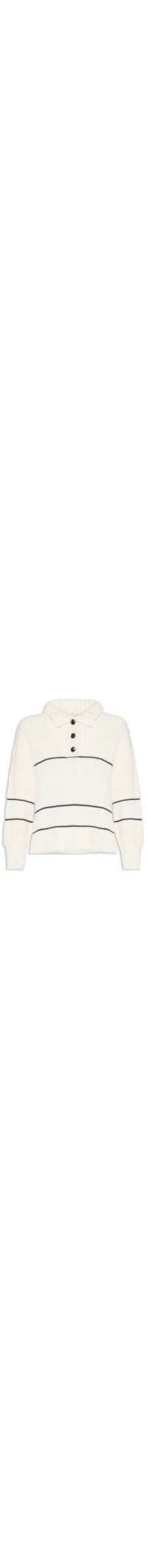 a Blusa Off White é Confeccionada Em tricot Com Superfície Texturizada E Baixa Elasticidade. a Peça Solta Ao Corpo Possui Colarinho Simples, Mangas Longas, Ombros Estendidos, Padronagem Em Listras Em Cor Contrastante, Acabamento Canelado, Tag Da Marca Metalizada Na Parte Posterior E Fechamento Frontal Por Botões.