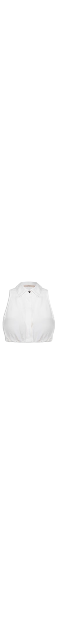 A blusa off white é confeccionada em tecido leve com toque de linho. A peça possui colarinho francês, alças médias, cavas estendidas, bojo, elástico embutido na barra, comprimento cropped*, shape solto, caimento reto, forro, acabamento pespontado e fechamento frontal por botões com vista aplicada.