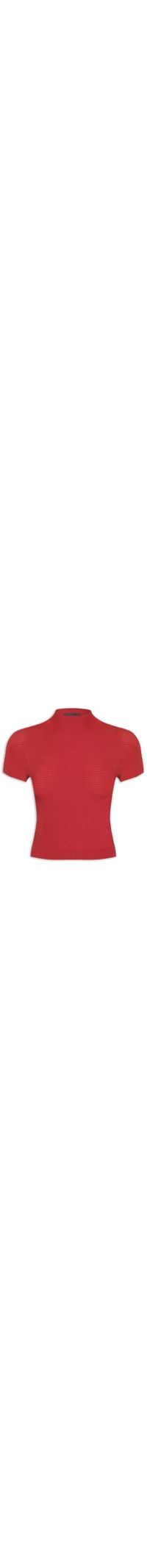 A blusa vermelha é confeccionada em tecido leve com acabamento texturizado e alta elasticidade. A peça solta ao corpo possui gola alta, mangas curtas e leve transparência.