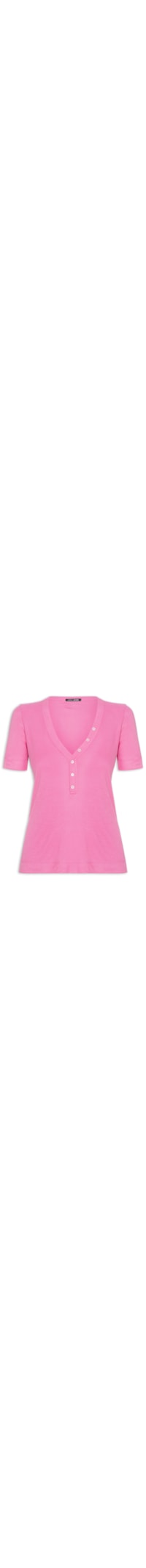 A blusa rosa é confeccionada em malha com superfície canelada e média elasticidade. A peça solta ao corpo possui decote V, mangas curtas, botões decorativos aplicados na parte frontal e logo da marca emborrachado aplicado na parte posterior.