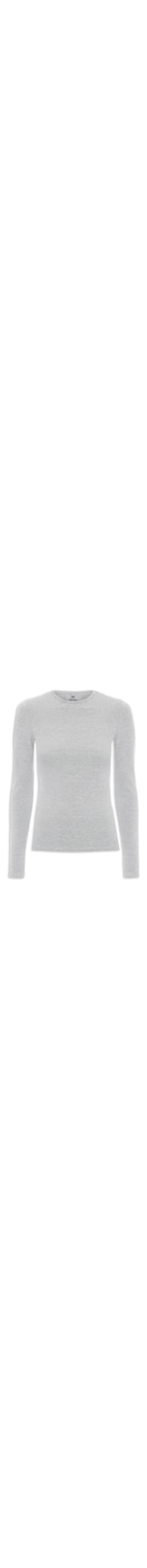 A blusa cinza é confeccionada em malha. A peça possui decote redondo, mangas longas, shape justo, caimento reto e acabamento pespontado.