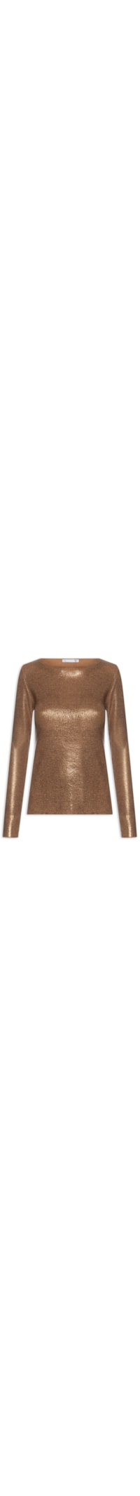 Cheia de personalidade, a blusa metalizada de '2Essential traz a sofisticação da textura do tricot + o toque de luxo do acabamento. Combine o item com uma saia midi, scarpin de bico fino, cinto e brincos metalizados para finalizar.