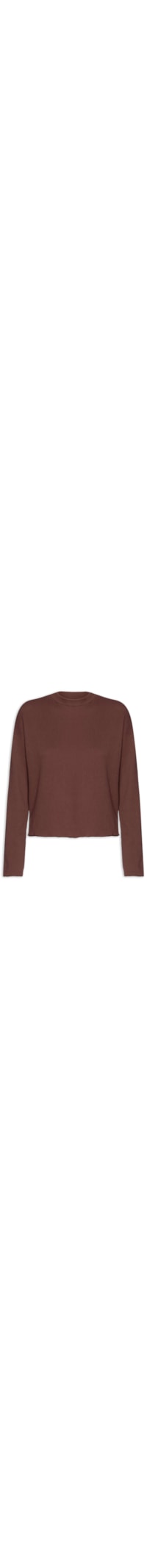 A blusa marrom é confeccionada em malha de algodão com superfície texturizada. A peça solta ao corpo possui decote redondo, mangas longas, ombros estendidos e acabamento canelado.