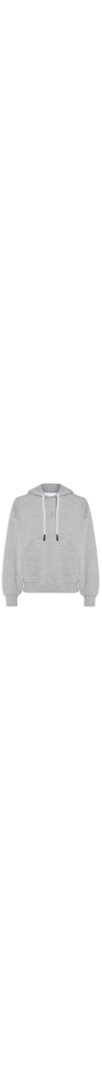 A blusa cinza é confeccionada em moletom sem elasticidade. A peça solta ao corpo possui capuz com cordão alongado embutido para ajuste e amarração, ombros estendidos, mangas longas, logo da marca bordado na altura do busto, bolsos frontais de modelo canguru e acabamento canelado.