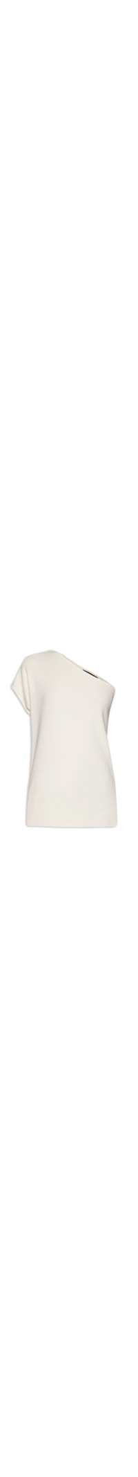 A blusa off white é confeccionada em tricot de média elasticidade. A peça solta ao corpo, possui decote ombro só, ombro estendido e comprimento longo.