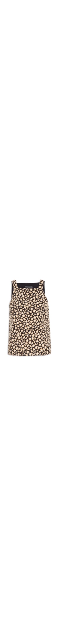 A blusa animal print é confeccionada em tecido leve sem elasticidade. A peça solta ao corpo possui decote quadrado, alças médias, pences frontais, recorte frontal e posterior, forro curto e sem bojo.