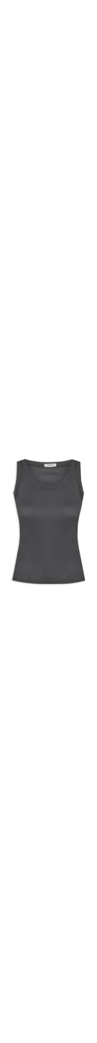 A blusa cinza é confeccionada por malha leve com média elasticidade. A peças justa ao corpo possui decote redondo, alças médias e acabamento canelado no decote e alças.