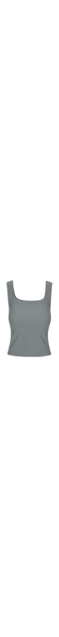 A blusa cinza é confeccionada em malha leve com superfície canelada de média elasticidade. A peça justa ao corpo, possui decote reto, alças médias, bojo removível, acabamento por corte a fio e forro no busto.