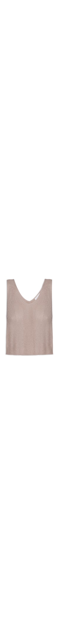 A blusa cinza é confeccionada em tricot com fios de lurex e alta elasticidade. A peça solta ao corpo possui decote V, alças médias, cavas estendidas, trama com recortes vazados, acabamento em corte a fio, leve transparência e comprimento cropped*.