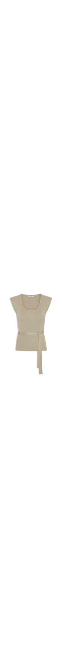 A blusa verde é confeccionada em tricot com alta elasticidade. A peça justa ao corpo possui decote U. alças largas e cavas regulares. Acompanha faixa média no mesmo tecido e cor para uso opcional.