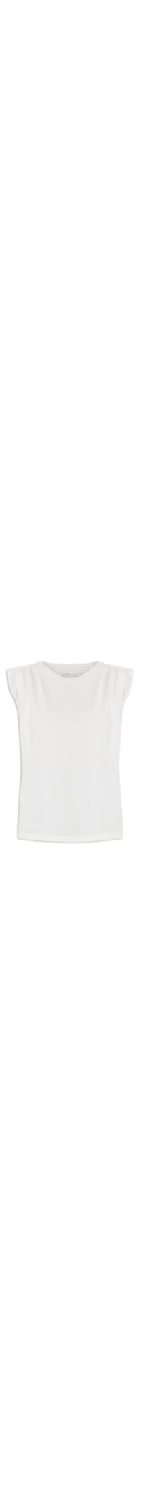 a blusa Branca é Confeccionada Em malha Com Média Elasticidade. A Peça Solta Ao Corpo Possui Decote Redondo Com Acabamento Canelado, Ombros Estendidos, Detalhe De Pregas Frontais Na Altura Das Alças E Cavas Regulares.