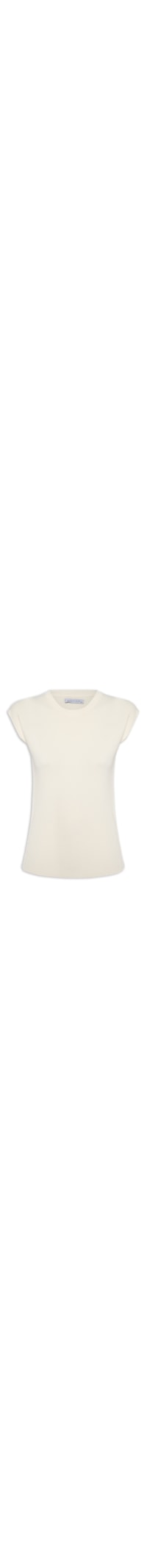 A blusa off white é confeccionada em tricot com alta elasticidade. A peça solta ao corpo possui decote redondo, alças largas, cavas regulares e ombros estendidos.