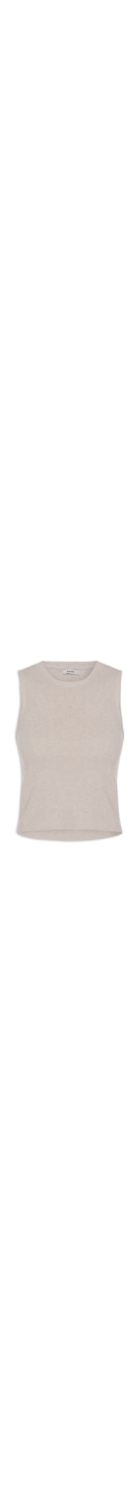 A blusa bege é confeccionada em tricot com superfície texturizada e alta elasticidade. A peça justa ao corpo possui decote redondo, alças médias e cavas regulares.