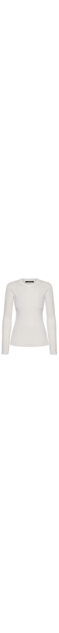 A blusa off white é confeccionada em malha leve com alta elasticidade. A peça justa ao corpo possui gola redonda, manga longa, comprimento longo e acabamento canelado.