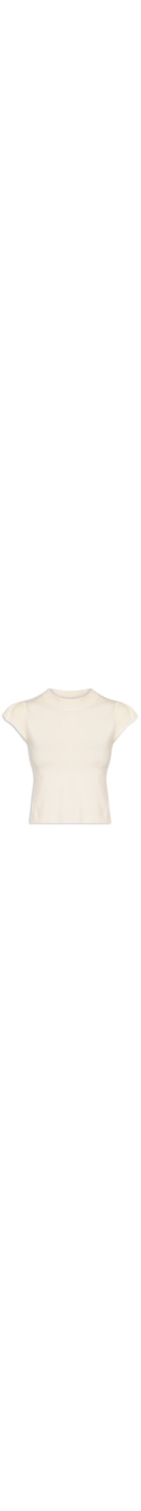A blusa off white é confeccionada em tricot com alta elasticidade. A peça solta ao corpo possui gola alta, mangas curtas e acabamento canelado na gola, nas mangas e na barra.