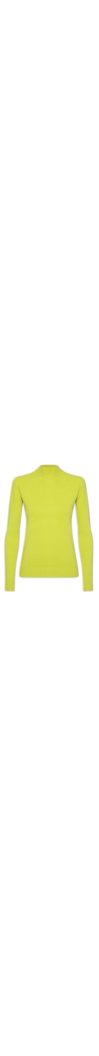 A blusa verde é confeccionada em tricot com alta elasticidade. A peça justa ao corpo possui gola alta, mangas longas e acabamento canelado.