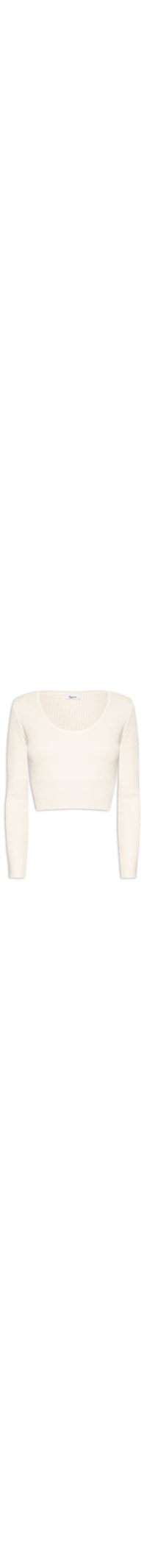 A blusa bege é confeccionada em tricot com superfície texturizada de média elasticidade. A peça justa ao corpo, possui decote redondo, mangas longas, barra afunilada e comprimento cropped*.