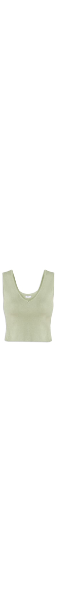 A blusa verde é confeccionada em tricot com alta elasticidade. A peça justa ao corpo possui decote V, cavas regulares, alças médias e comprimento cropped*.
