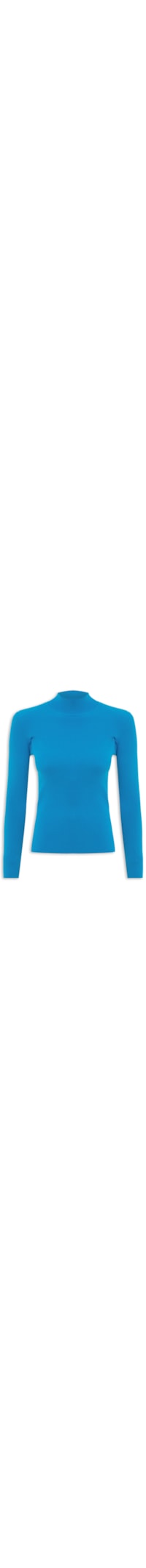A blusa azul é confeccionada em tricot com superfície canelada com média elasticidade. A peça justa ao corpo possui gola alta e mangas longas.
