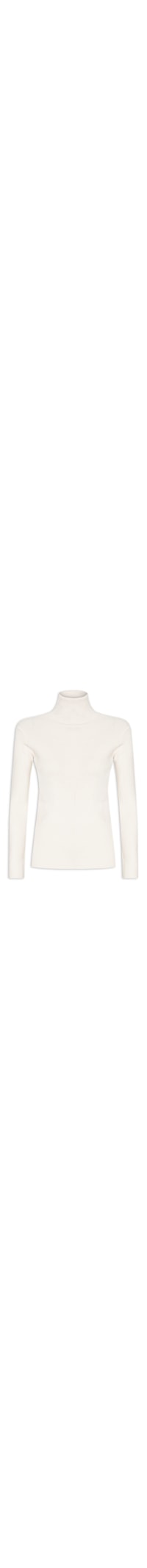A blusa off white é confeccionada em tricot com alta elasticidade. A peça justa ao corpo possui gola alta e mangas longas.