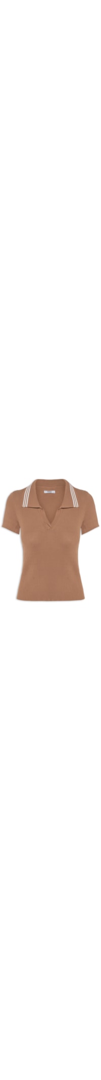 A blusa marrom é confeccionada em tricot canelado com alta elasticidade. A peça justa ao corpo possui gola esporte com recorte em V e detalhe de vivo em cor contrastante e mangas curtas.