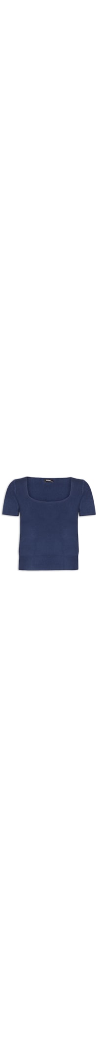 A blusa azul marinho é confeccionada em tricot com superfície canelada com alta elasticidade. A peça levemente justa ao corpo possui decote quadrado e mangas curtas.