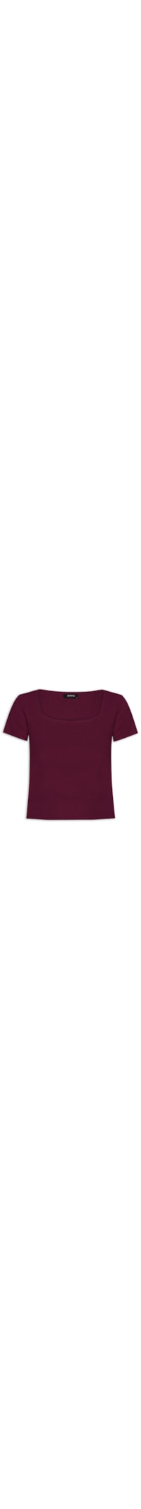 A blusa roxa é confeccionada em tricot com superfície canelada com alta elasticidade. A peça levemente justa ao corpo possui decote quadrado e mangas curtas.