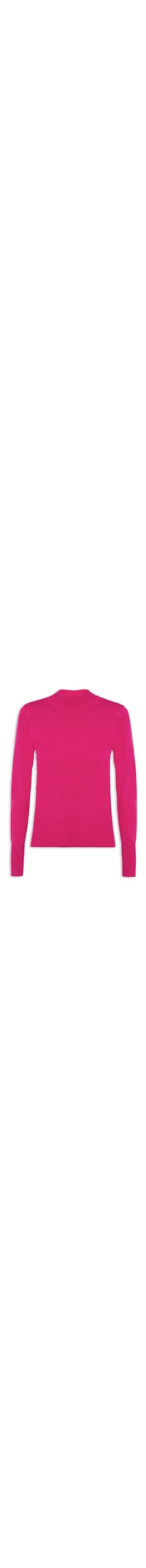 A blusa rosa é confeccionada em tricot. A peça possui gola alta, mangas longas, shape solto, caimento reto e acabamento canelado.