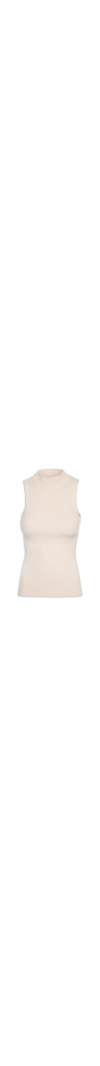A blusa bege é confeccionada em tricot canelado com alta elasticidade. A peça justa ao corpo possui gola alta, alças médias e cavas estendidas.