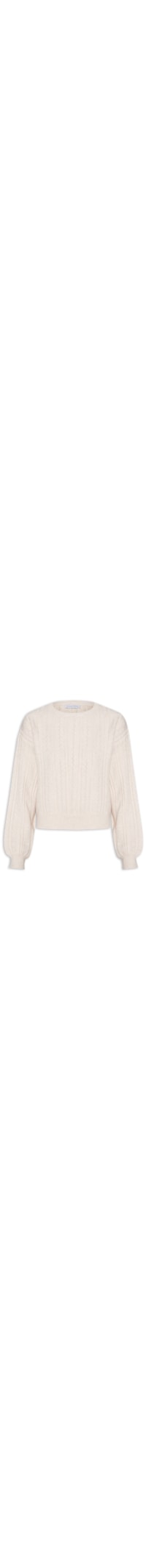 A blusa bege é confeccionada por tricot com superfície texturizada e média elasticidade. A peça solta ao corpo possui decote redondo, mangas longas, ombros estendidos e acabamento canelado.