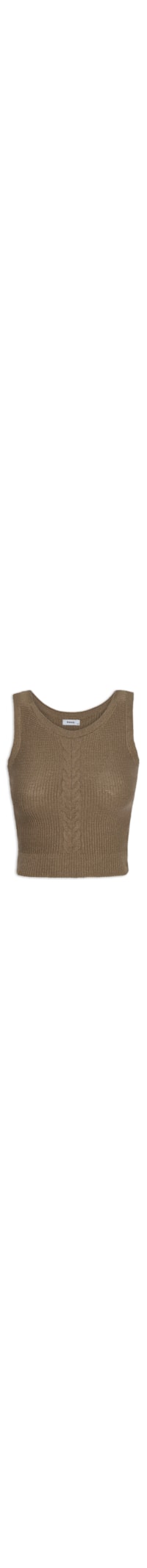 A blusa marrom é confeccionado em tricot com alta elasticidade. A peça justa ao corpo possui decote recondo, alças grossas, detalhe de superfície texturizada trançada na região frontal e comprimento cropped*.