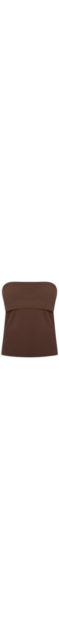 A blusa marrom é confeccionada em malha de média elasticidade. A peça justa ao corpo de modelo tomara que caia possui decote reto, recorte superior sobreposto e comprimento cropped*.